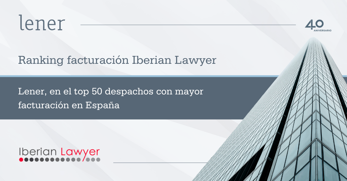 Iberian Lawyer incluye a Lener dentro de su top 50 despachos por volumen de facturación en España, ranking que confirma el crecimiento continuado del mercado de los servicios jurídicos "a pesar de los efectos del Covid-19, la inflación o las consecuencias sufridas por el conflicto entre Rusia y Ucrania", según afirman nuestros compañeros de la publicación internacional Iberian Lawyer.